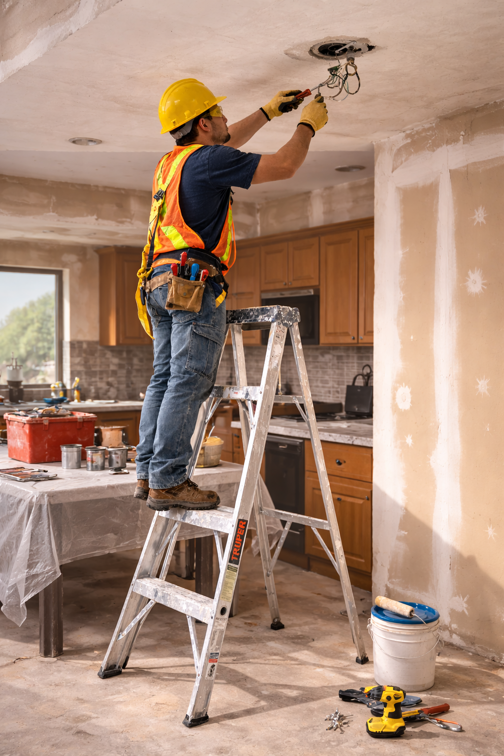 Útiles para colocar luminarias, revisar cableado, realizar ajustes técnicos y ejecutar trabajos ligeros en altura con acceso rápido.